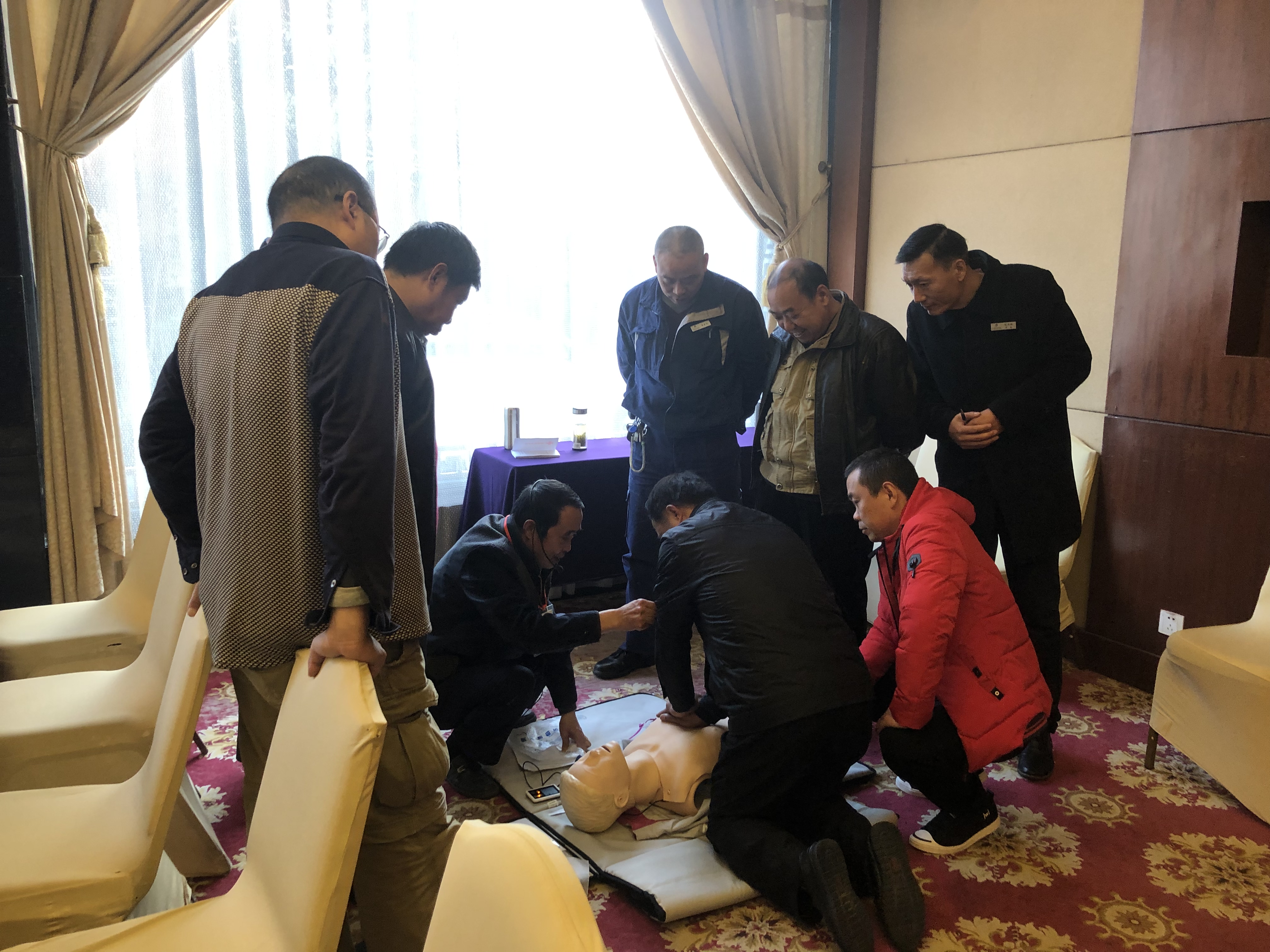 為了普及正確的基本救護(hù)理念和技能,在突發(fā)事件中爭取“救命的黃金時刻”,11月22日,揚(yáng)州市紅十字會對萃園城市酒店所有員工開展了救護(hù)培訓(xùn)講座。 此次活動內(nèi)容為心肺復(fù)蘇及現(xiàn)場急救知識培訓(xùn)。培訓(xùn)中,老師用通俗易懂的語言給大家講述了紅十字運(yùn)動基本知識、心肺復(fù)蘇、創(chuàng)傷包扎、突發(fā)意外情況等四項,員工們認(rèn)真聽課,大膽提問,并爭相演練心肺復(fù)蘇,在人體模型前彎腰,按壓,吹氣,現(xiàn)場氣氛十分活躍,使在場員工在活躍的氣氛中切身體會并掌握了許多急救知識。 通過此次培訓(xùn),不僅使大家掌握了一定的急救知識和技能,還增強(qiáng)了自身應(yīng)對突發(fā)事件時的自救互救意識,不但可以保護(hù)自己,也可以對有需要的人及時伸出援手。