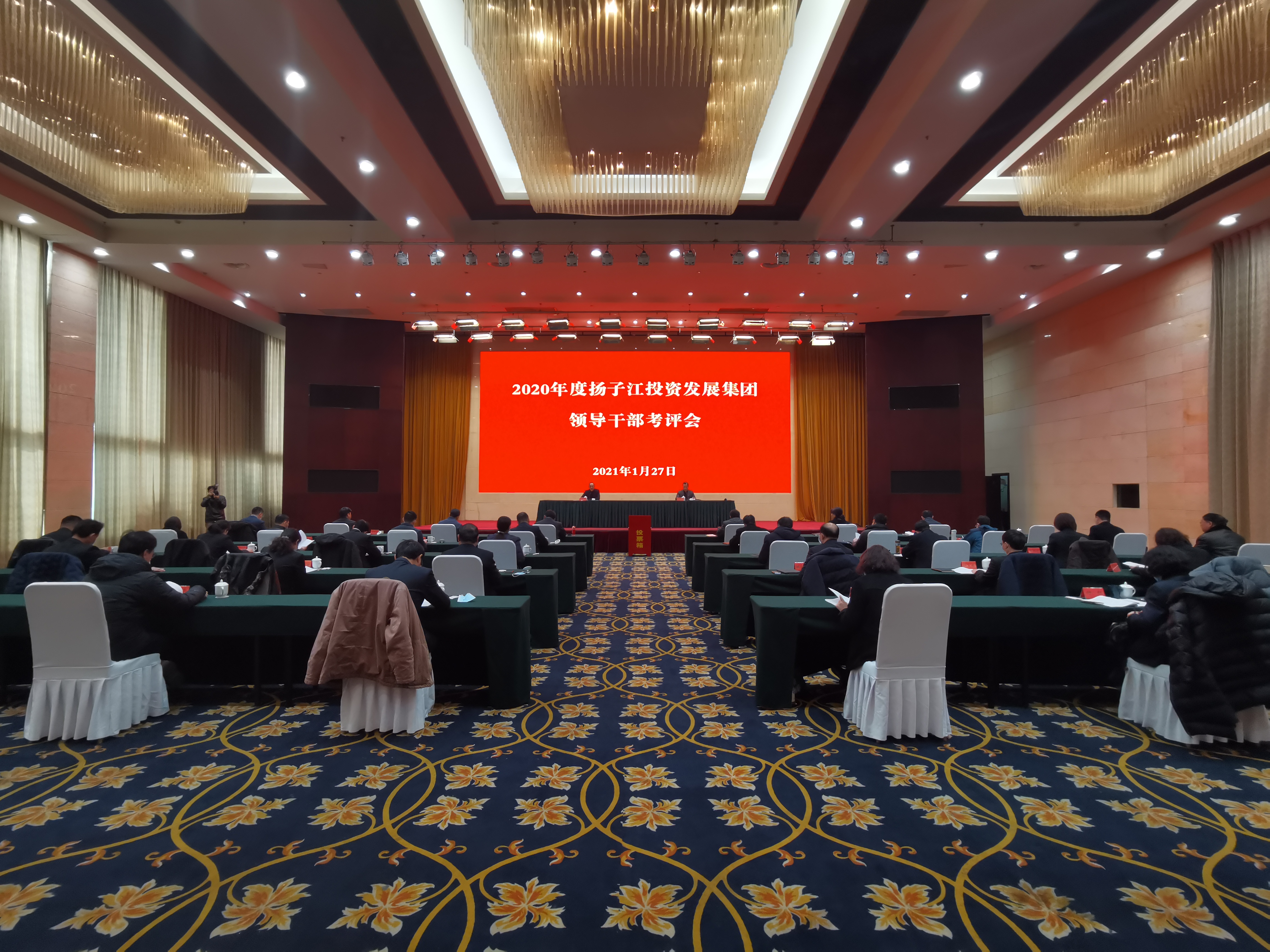 1月27日下午,揚(yáng)子江集團(tuán)在揚(yáng)州會(huì)議中心召開2020年度領(lǐng)導(dǎo)干部考評(píng)會(huì)。集團(tuán)黨委書記、董事長蔡余良主持會(huì)議,并代表班子和個(gè)人作了述職述廉報(bào)告和干部選拔任用年度工作報(bào)告,集團(tuán)黨委副書記、總經(jīng)理、副董事長劉衛(wèi)國作了個(gè)人述職述廉報(bào)告,其他班子成員遞交了書面報(bào)告。所屬企業(yè)黨政主要負(fù)責(zé)人、集團(tuán)中層干部參加會(huì)議。