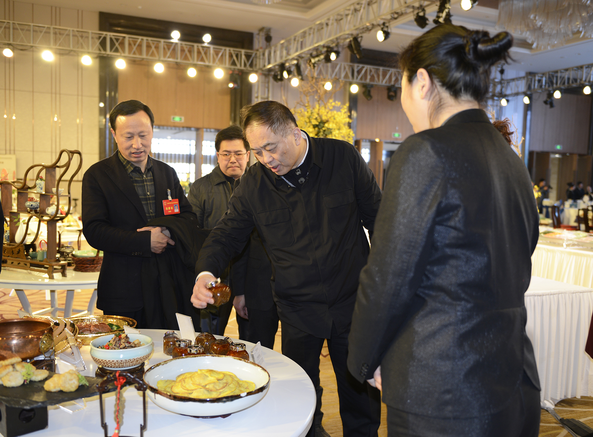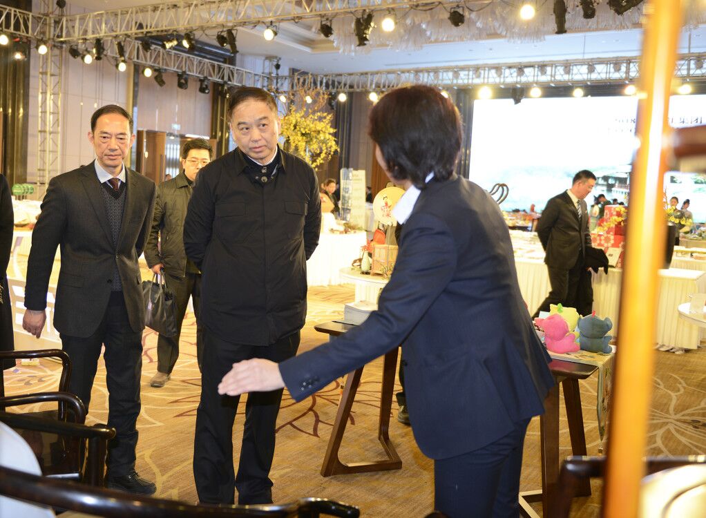 1月9日,揚(yáng)州市政協(xié)主席朱民陽率隊(duì)專程到月畔灣酒店參觀2018揚(yáng)子江集團(tuán)春季020產(chǎn)品展。集團(tuán)總經(jīng)理蔡余良等陪同參觀。