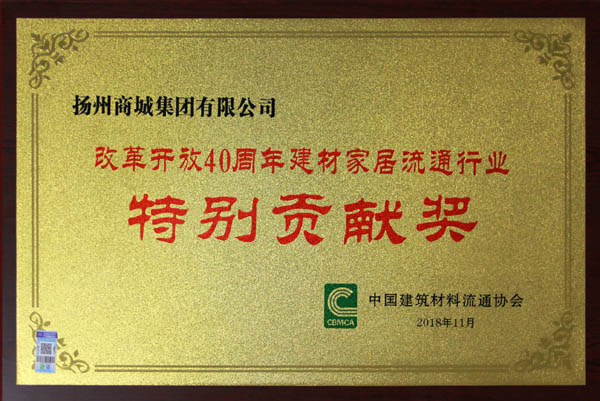 揚(yáng)州商城榮獲 “改革開放40周年建材家居流通行業(yè)特別貢獻(xiàn)獎”